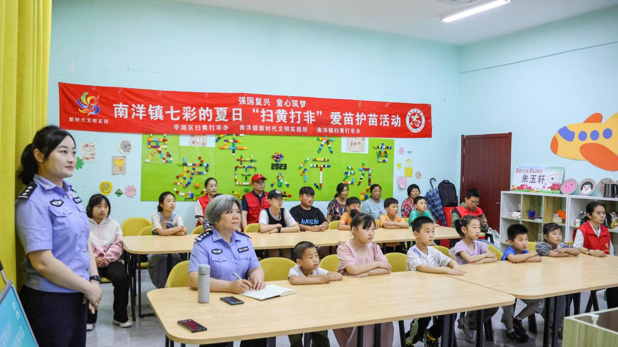 联合教育局、文旅局等多部门开展“爱苗护苗”主题系列活动,组织经验丰富的老党员志愿者和青年民警业务骨干组成宣讲小队,深入偏远乡村小学、社区儿童之家,通过播放自制的《护“未”来》普法视频、设置趣味互动问答环节、模拟“识别非法出版物”情景小游戏等沉浸式形式,向孩子们推广普及“扫黄打非”法律法规、网络安全防护知识及健康阅读理念。在各乡村中小学内部区域陈设“护苗知识展板”专区,发放包含“护苗”书签、普法手册、文具套装在内的“护苗”学习用品套餐,2025年暑期联合南洋镇新时代文明实践所开展的“七彩的夏日——护苗行动进乡村”活动,吸引了近300名儿童参与,有效强化了未成年人对有害信息的辨别能力和健康阅读意识。