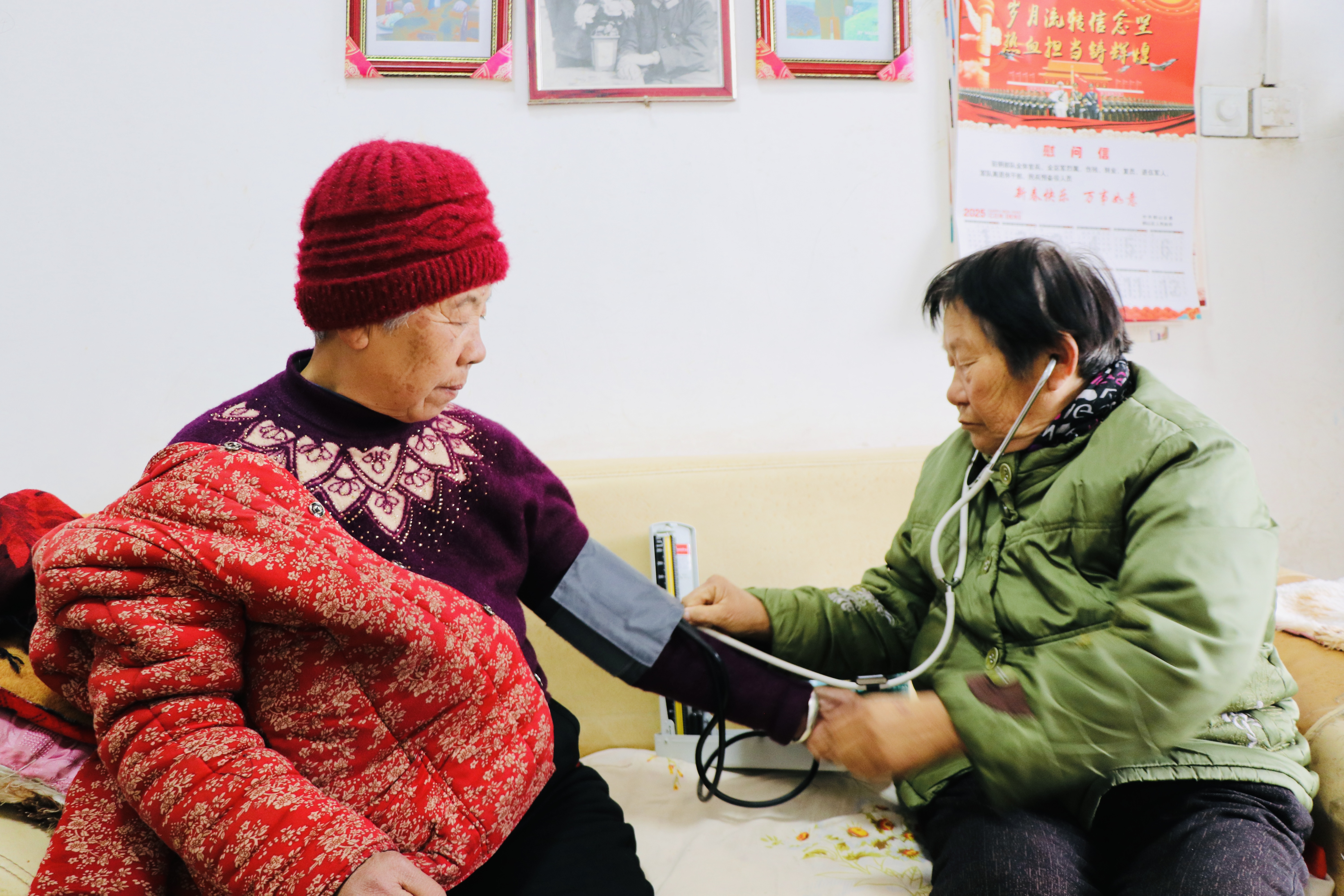 2012年,张世芳决定正式退休,但她依旧没有忘记自己的诺言,张世芳的家从此变成了村民们的“免费诊所”,为此,她还置办了听诊器、血压仪等器材。13年来,常常天还未亮,“咚咚”的敲门声便会响起,村民们或来测量血压,或咨询用药方法,从头疼脑热的用药选择,到哪家医院药店看病买药更实惠,事无巨细,都会向她请教。