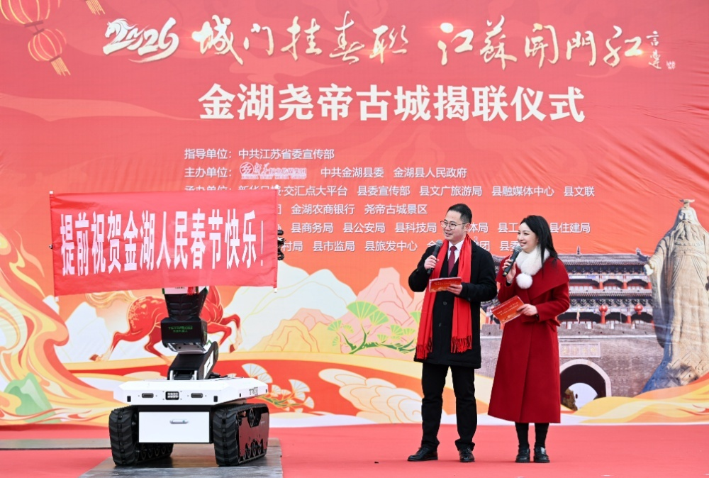 银蛇辞旧岁,骏马报新春。2月7日清晨,淮安市金湖县寒风料峭,却掩不住满城涌动的喜庆与热情。市民纷纷驻足翘首,手机镜头一齐聚焦尧帝古城那一抹鲜亮的中国红,共同迎接“城门挂春联 江苏开门红”淮安地区活动的盛大启幕。