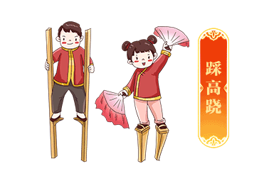 踩高跷,是民间盛行的一种群众性技艺表演。高跷本属中国古代百戏之一种,早在春秋时已经出现。中国最早介绍高跷的是《列子・说符》篇:“宋有兰子者,以技干宋元。宋元召而使见其技。”