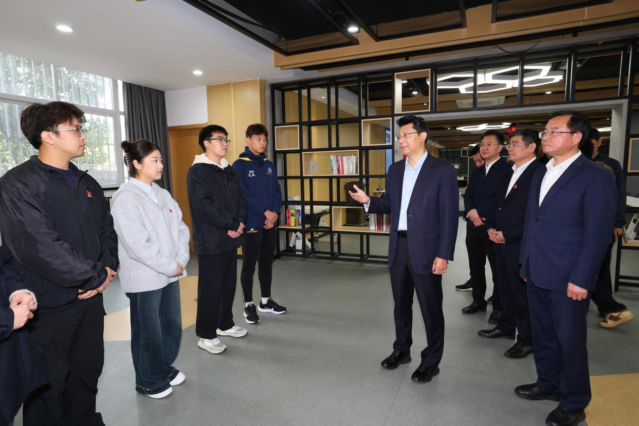 扬州工业职业技术学院现有全日制在校生1.5万余人,其国家级创新创业实践基地整合线上线下资源,为学生营造了“真项目、真操作”的实践环境。王进健走进助农直播馆、双创综合素养提升区,现场观摩学生直播实训,察看学生作品,并与学生交流制作技艺与市场前景。在与师生代表交流时,王进健指出,全会提出要提升职业学校办学能力、建设特色鲜明高职院校,充分体现国家对职业教育和高校建设的高度重视。他勉励大学生坚定理想信念,珍惜时光,刻苦学习,锤炼过硬专业技能,把握新的时代机遇,敢想敢为、矢志创新。他还要求学院紧扣发展定位与专业特色,推动科教资源与扬州产业优势深度融合,持续培育人才、激发活力、多出成果,为高质量发展注入新动能。