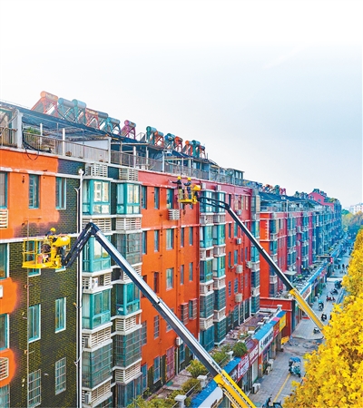老旧小区改造是提升居民居住品质、保障居民安居乐业的重要举措。图为安徽芜湖繁昌区,工人在进行老旧小区改造。