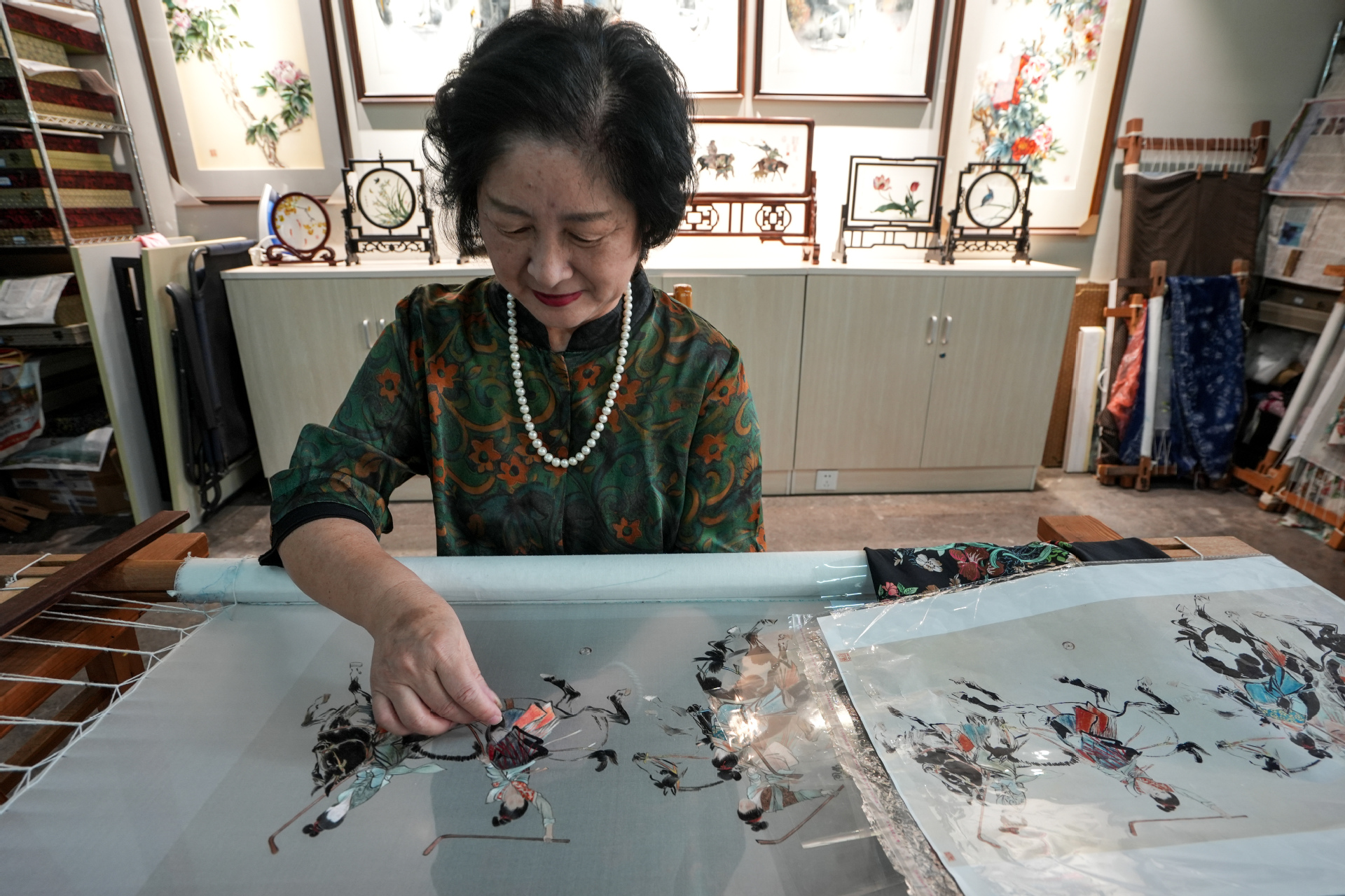 赵红育在制作无锡精微绣双面绣作品。 新华社发