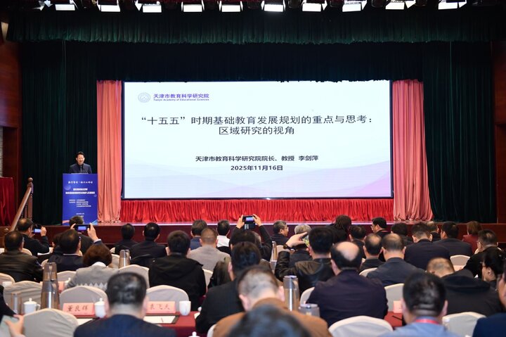 天津市教育科学研究院院长、教授李剑萍围绕《“十五五”时期基础教育发展规划的重点与思考:区域研究的视角》主题,以天津市基础教育为典型样本,系统梳理总结了“十四五”时期天津市在义务教育优质均衡发展水平、普通高中育人方式改革、深入推进基础教育综合改革国家实验区建设等方面取得的显著成绩,以及“十五五”时期面临的中小学教育资源保障与民生需求适配性等共性挑战。他提出,“十五五”时期天津市基础教育事业将设置普及程度、结构优化、发展质量三大指标,并聚焦持续推进基础教育扩优提质等九大重点任务。