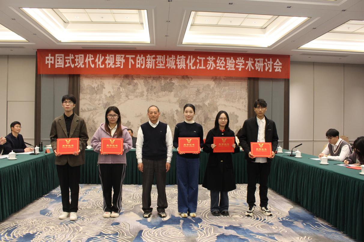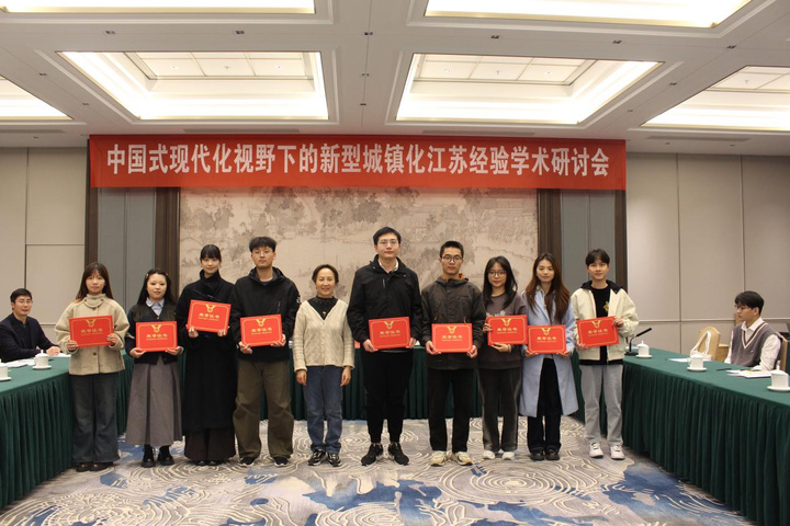 为激发青年学者的研究热情与创新活力,江苏省城镇化研究会在研讨会前期专门组织了面向面向青年学者的征文活动,得到广泛响应与积极参与。经严格评审,最终20篇优秀作品脱颖而出。会上,副会长朱力宣读了“青年论坛”获奖名单,邹农俭会长、朱力副会长、扈海鹂监事分别为特等奖、一等奖、二等奖获奖青年学者颁奖并合影留念。