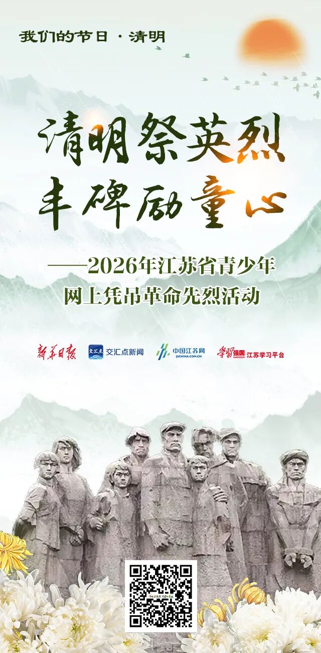为大力弘扬爱国主义精神,江苏省精神文明建设办公室在清明期间,组织开展2026年江苏省青少年网上凭吊革命先烈活动。活动通过敬献鲜花、签名寄语、云端追思等方式,教育引导广大青少年缅怀先烈事迹、传承英烈精神、赓续红色基因、激发爱国热情。