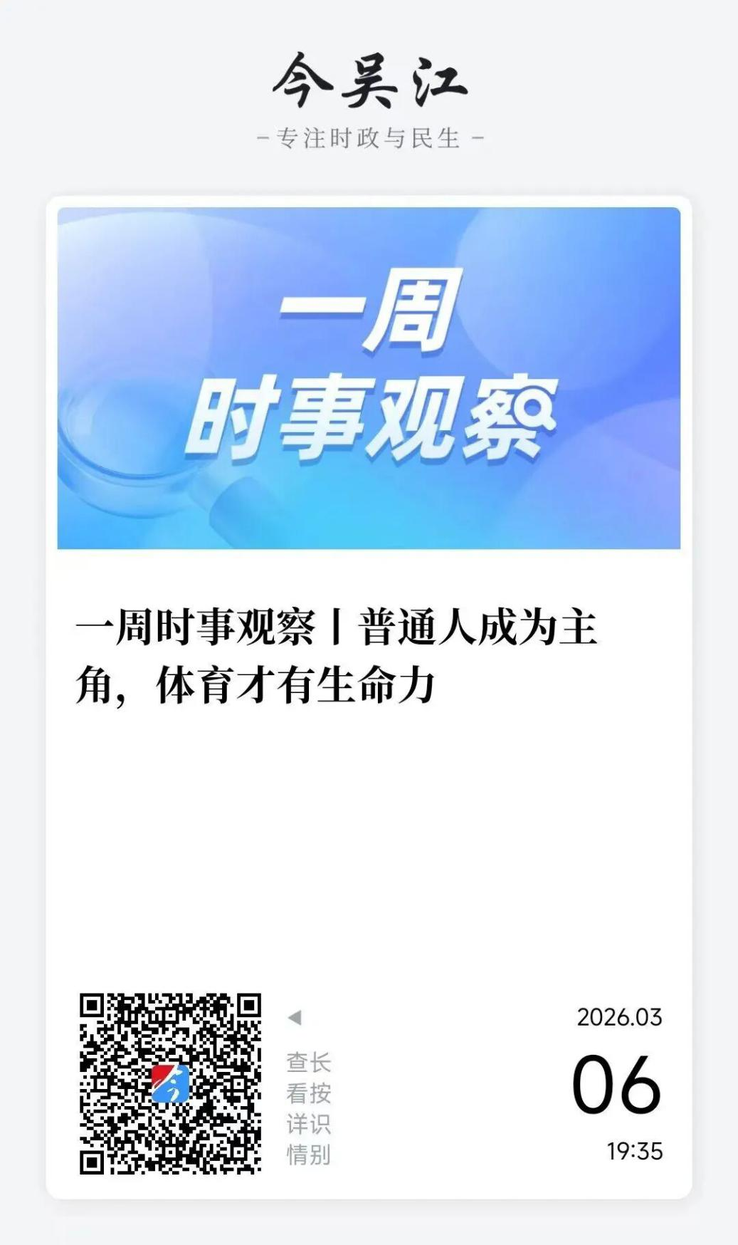 苏州市吴江区融媒体中心:《一周时事观察丨普通人成为主角,体育才有生命力》