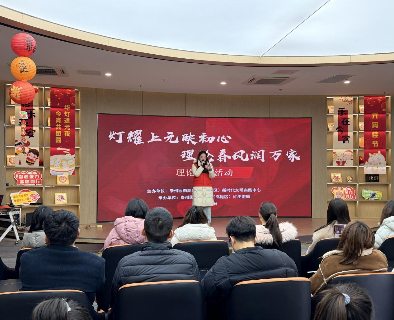 为深入学习贯彻党的二十届四中全会精神,弘扬中华优秀传统文化,3月2日,泰州医药高新区(高港区)在新时代文明实践所开展“灯耀上元映初心 理论春风润万家”理论宣讲活动。