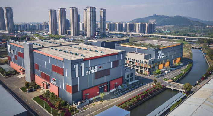 位于无锡市滨湖区的华莱坞,现集聚墨境天合、Base FX、博纳影业、星皓影业等超1000家国内外知名影视制作及数字文化企业,亩均产出近1700万元。但13年前,这里还曾是无锡最大的轧钢厂——雪浪轧钢厂。华莱坞保留烟囱作为地标性艺术装置,将废弃厂房转化为影视制作棚、数字科技馆等现代文化空间,将轧钢厂龙门吊化身为产业园中具有象征意义的大门,“工业锈带”蜕变为“产业秀带”。