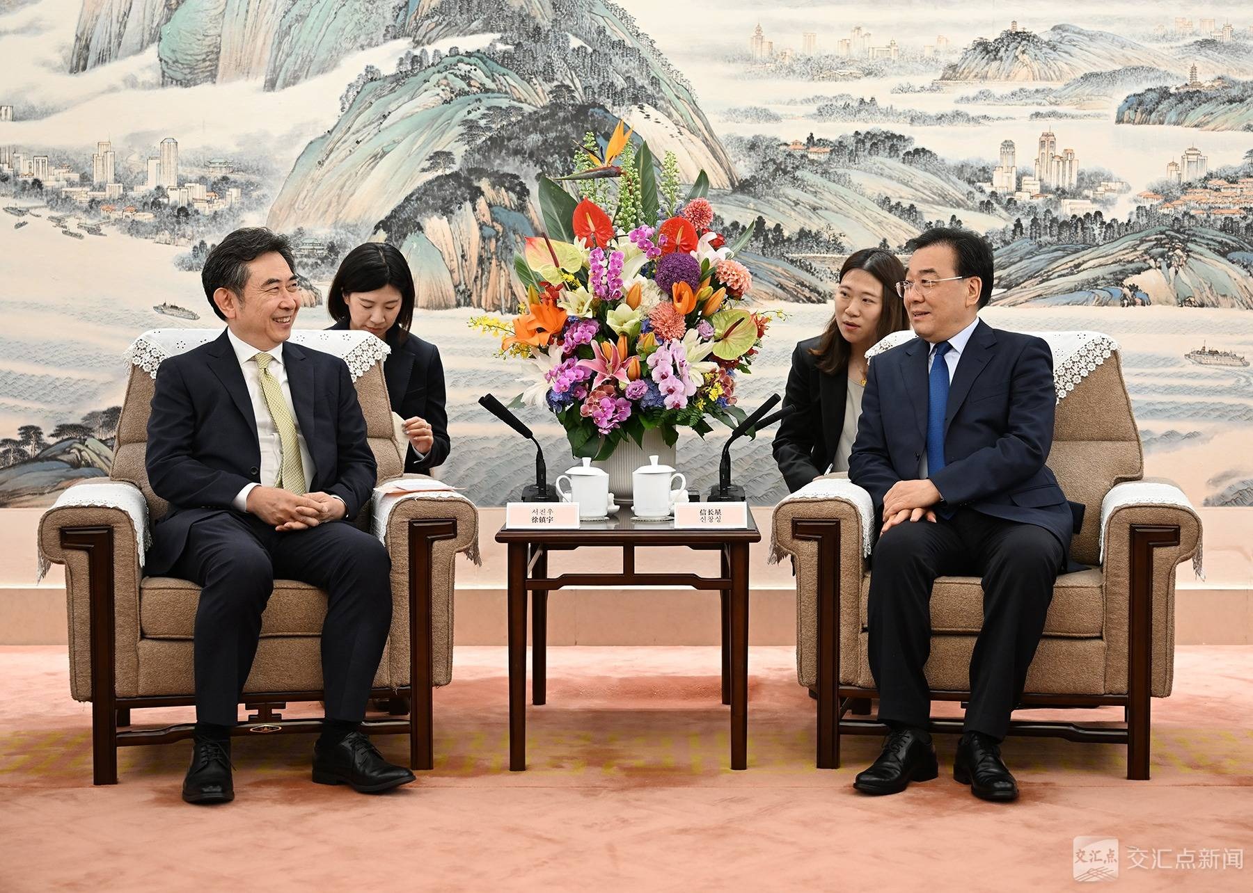 信长星对徐镇宇一行表示欢迎。他说,今年初,习近平主席同李在明总统会谈时指出,中韩经济联系紧密,产业链供应链深度互嵌,合作互惠互利。SK集团持续投资中国、深耕江苏,取得了丰硕成果,结下了深厚友谊。我们愿与SK集团一道,不断拓展合作领域,努力实现更高水平互利共赢,为深化中韩经贸合作作出新的贡献。