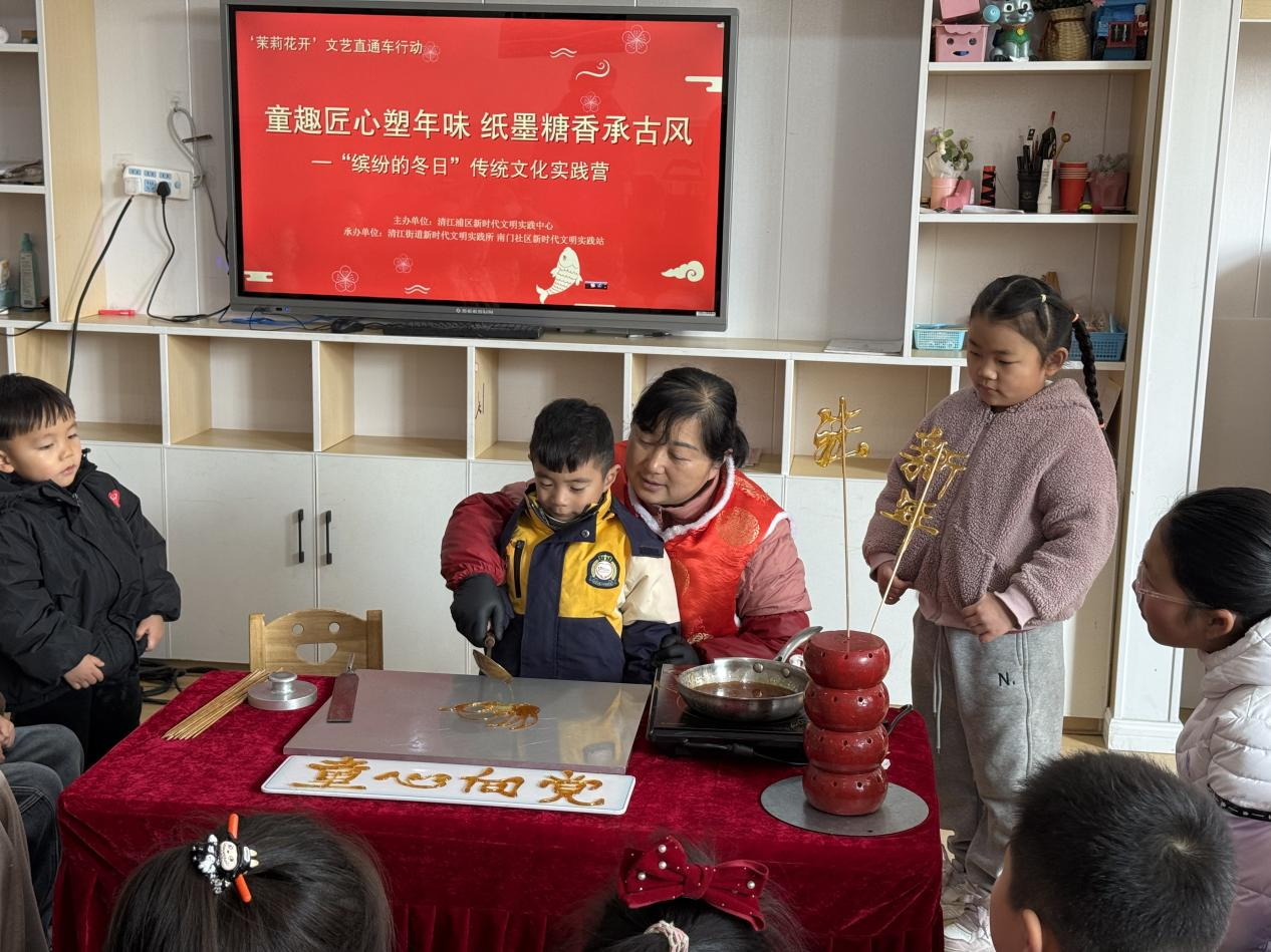 近日,淮安市清江浦区“童趣匠心塑年味,纸墨糖香承古风”传统文化实践营系列活动在各社区新时代文明实践站陆续开展。活动以“手工实践+文化体验”为主线,聚焦未成年人群体,将传统年俗、非遗技艺融入实践课堂,让孩子们在指尖传承中感受中华优秀传统文化的温度与魅力。