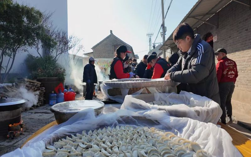 这份温暖的传递早有准备。12月20日下午,蒋坝镇居委会的志愿者们就精心赶制了65份爱心饺子,送到辖区独居老人手中,让老人们提前感受到节日的关怀。冬至当天,热气腾腾的饺子出锅后,首先端给了辛勤工作的环卫工人,随后分发给本地居民和游客。一碗碗热饺子,温暖了胃,更温暖了心,彰显了文明实践的民生温度。