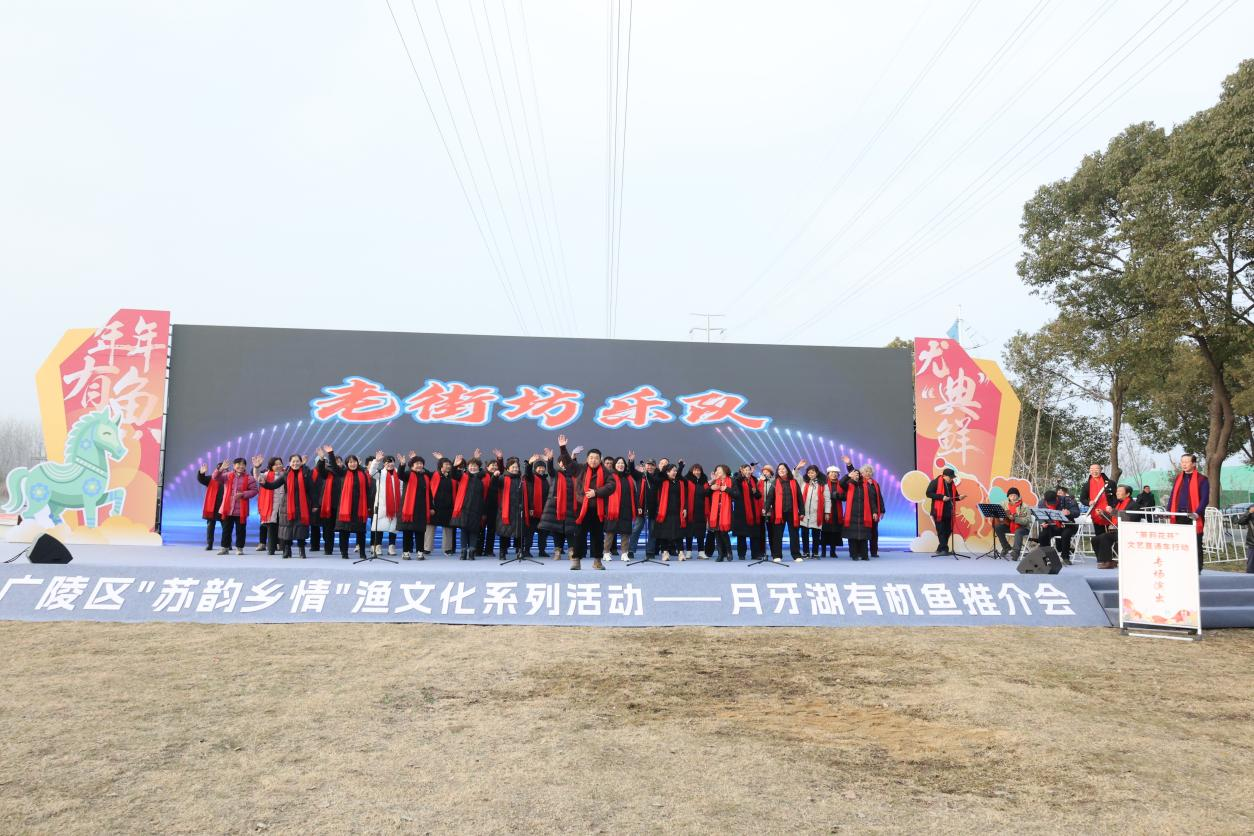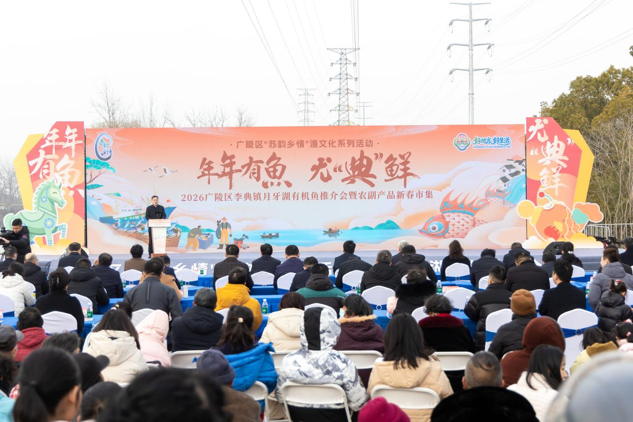 江风拂岸,鱼跃丰年,文艺润心,年味飘香。2月1日下午,“茉莉花开”文艺直通车行动走进李典镇,“年年有鱼尤‘典’鲜”2026广陵区李典镇月牙湖有机鱼推介会暨农副产品新春市集在月牙湖生态湖边温情启幕。各界嘉宾与市民朋友齐聚一堂,在冬捕的欢腾、湖鲜的鲜香、民俗的韵味中,共同解锁了一场融合生态之美、产业之力、文化之韵的新春盛会。