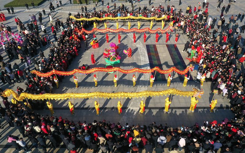 爆竹声声辞旧岁,民俗欢歌贺新春。2月17日,淮安市洪泽湖欢乐广场人头攒动、人声鼎沸,“龙马呈祥 福满新春”民俗巡演闹新春活动火热启幕。洪泽区业余文艺团队挑大梁、显风采,携手呈现洪泽湖渔鼓舞、玩花船、舞龙等非遗展演,福禄寿喜财五路福神齐上阵,用接地气的演绎、暖民心的举措,让洪泽市民在家门口乐享了一场热闹、欢乐、祥和的节日文化盛宴。