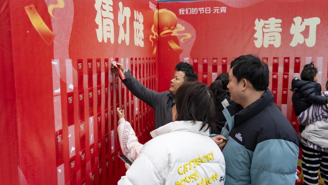 为增强节日互动体验,活动特别在演出开始前设置了“猜灯谜”民俗互动专区。百余条融合传统文化与趣味知识的灯谜悬挂在红色灯笼下,吸引了众多居民踊跃参与。大家开动脑筋、交流答案,在欢声笑语中感受传统民俗的魅力,现场洋溢着浓厚的团圆喜庆氛围。