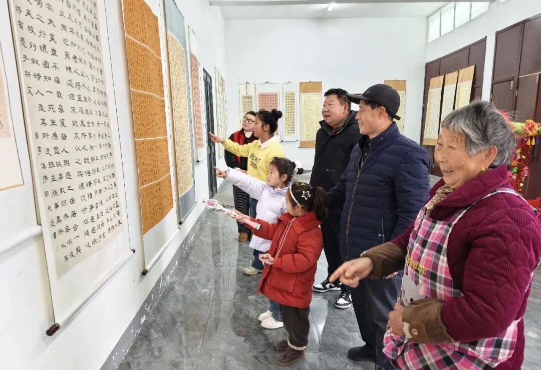 与此同时,白马湖村老影剧院里墨香氤氲,“湖润翰墨——郑先游书法作品展”在此启幕。作为土生土长的白马湖人,郑先游携数十幅精品力作回乡展出,作品涵盖隶、楷、行诸体,既有经典篇章,也有讴歌家乡风物的自创内容。展览吸引了众多村民扶老携幼前来观赏,大家驻足品鉴,在笔墨丹青中感受传统文化的魅力。