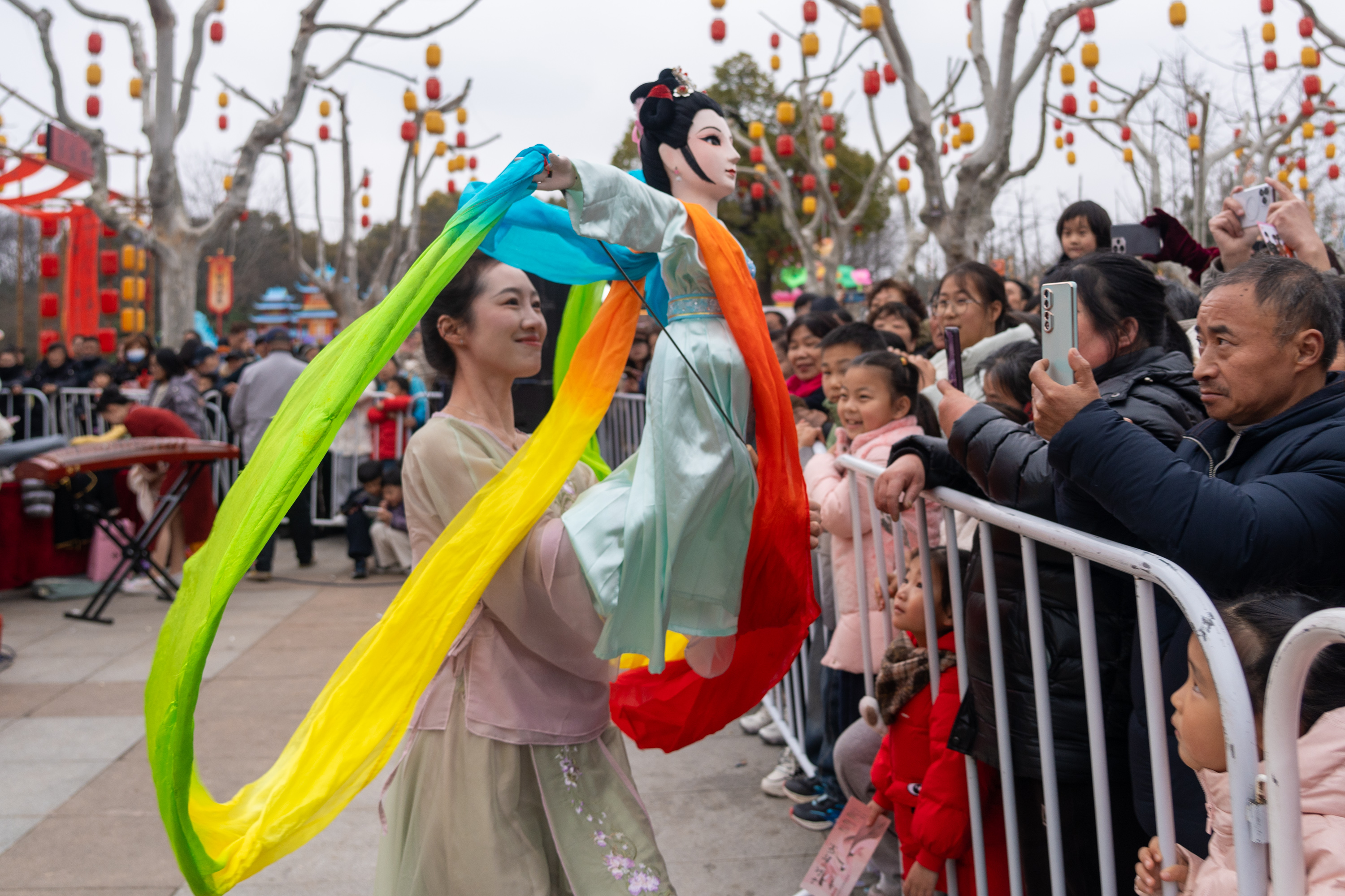 演出间隙,活动现场还设置了猜灯谜、做花灯等传统民俗体验区,让市民游客感受元宵佳节的温馨氛围。结合2026年“水韵江苏·家门口享非遗”扬州站活动,非遗技艺展演、传统美食品鉴等内容也融入其中,让非遗不再是尘封的记忆,而是可触可感的鲜活体验。