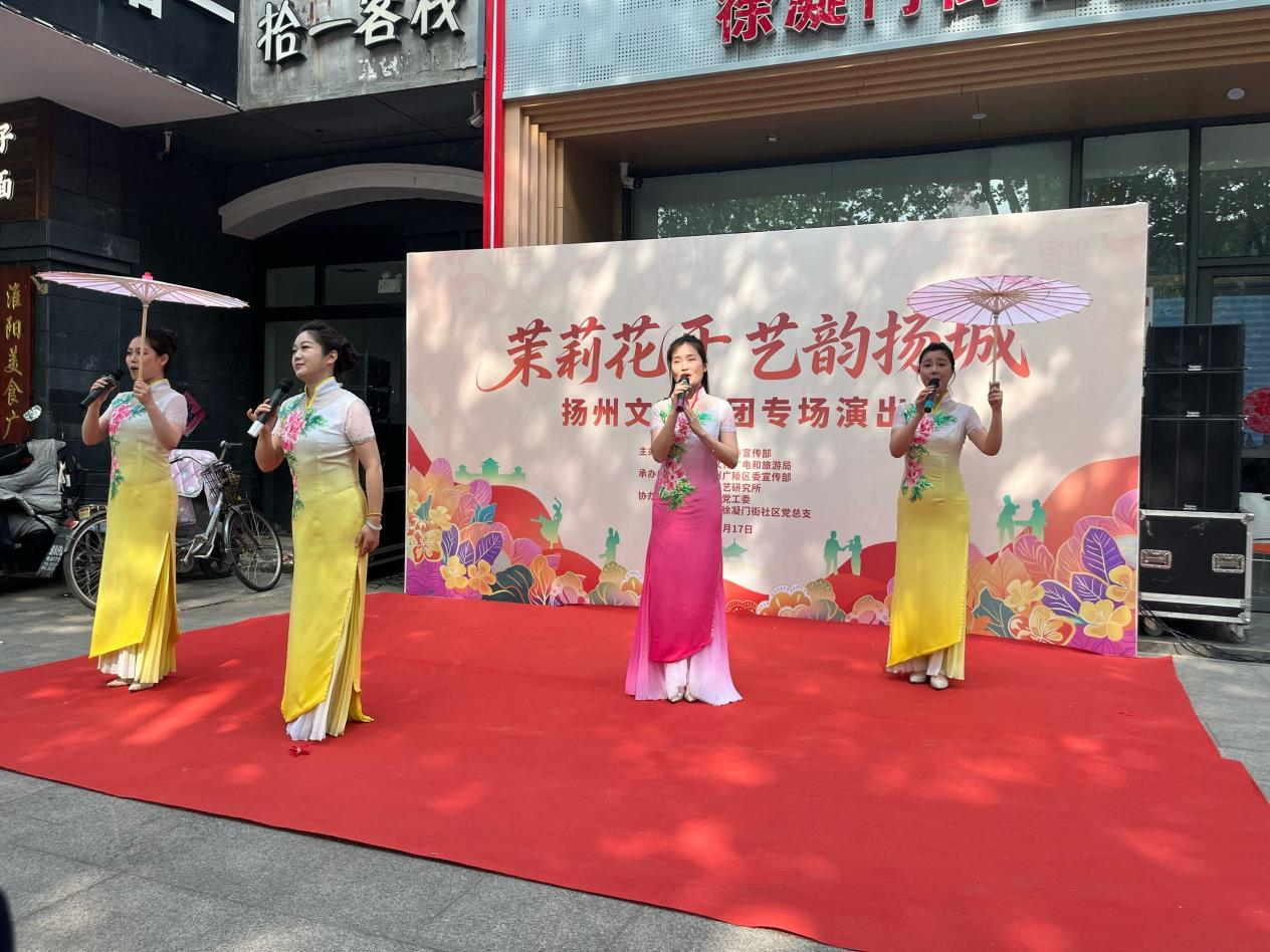 4月17日下午,广陵区东关街道徐凝门街社区门前广场上掌声、叫好声此起彼伏。由市委宣传部、市文广旅局主办,广陵区委宣传部、市曲艺研究所承办,东关街道、徐凝门街社区协办的“茉莉花开·艺韵扬城”扬州文艺院团专场演出精彩开演。