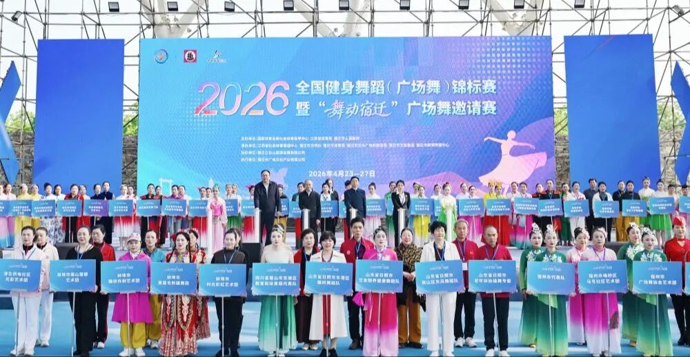 4月23日——27日2026年全国健身舞蹈(广场舞)锦标赛暨“舞动宿迁”广场舞邀请赛在宿迁三台山国家森林公园秀场成功举办。本次邀请赛由国家体育总局社会体育指导中心、江苏省体育局、宿迁市人民政府联合主办,江苏省社会体育管理中心、市文明办、市体育局、市文化广电和旅游局、市文旅集团、市新闻传媒中心共同承办。本次赛事吸引了来自全国各地55支队伍、近700名选手参加。