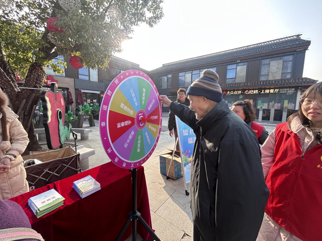 在“幸福大转盘”抽奖区,居民们排起了长队,大家兴致勃勃地转动转盘,赢取扬州漆器、筷子套盒、暖心围裙、陶瓷杯、新春福字等精美奖品。这些奖品不仅实用,更寓意着“节俭”与“福气”相伴。一旁的“移风易俗有奖问答”区更是气氛热烈,主持人提出关于《扬州文明有礼24条》《移风易俗十抵制十提倡》的问题,现场观众踊跃抢答,在一问一答中加深了对文明新风尚的理解。此外,“签名有礼墙”前也围满了市民,大家纷纷签下自己的名字,许下“反对浪费、崇尚节约”的郑重承诺。同时,市民只需扫码关注“扬州宣传”微信公众号,即可领取定制的文明红包封套,将文明祝福带回家。