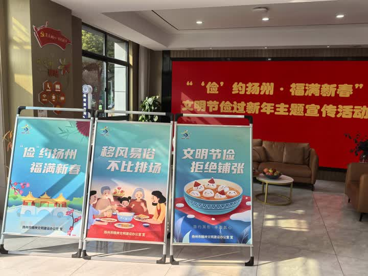 2月3日上午,“‘俭’约扬州·福满新春——文明节俭过新年”移风易俗宣传活动在红园广场和蜀冈—瘦西湖风景名胜区梅岭街道邗沟社区党群服务中心门前火热举行。此次活动由市文明办主办、蜀冈—瘦西湖风景名胜区协办,通过寓教于乐的互动形式,引导广大市民讲文明树新风,在全社会营造过一个节俭年、过一个幸福年、过一个文明年的浓厚氛围。