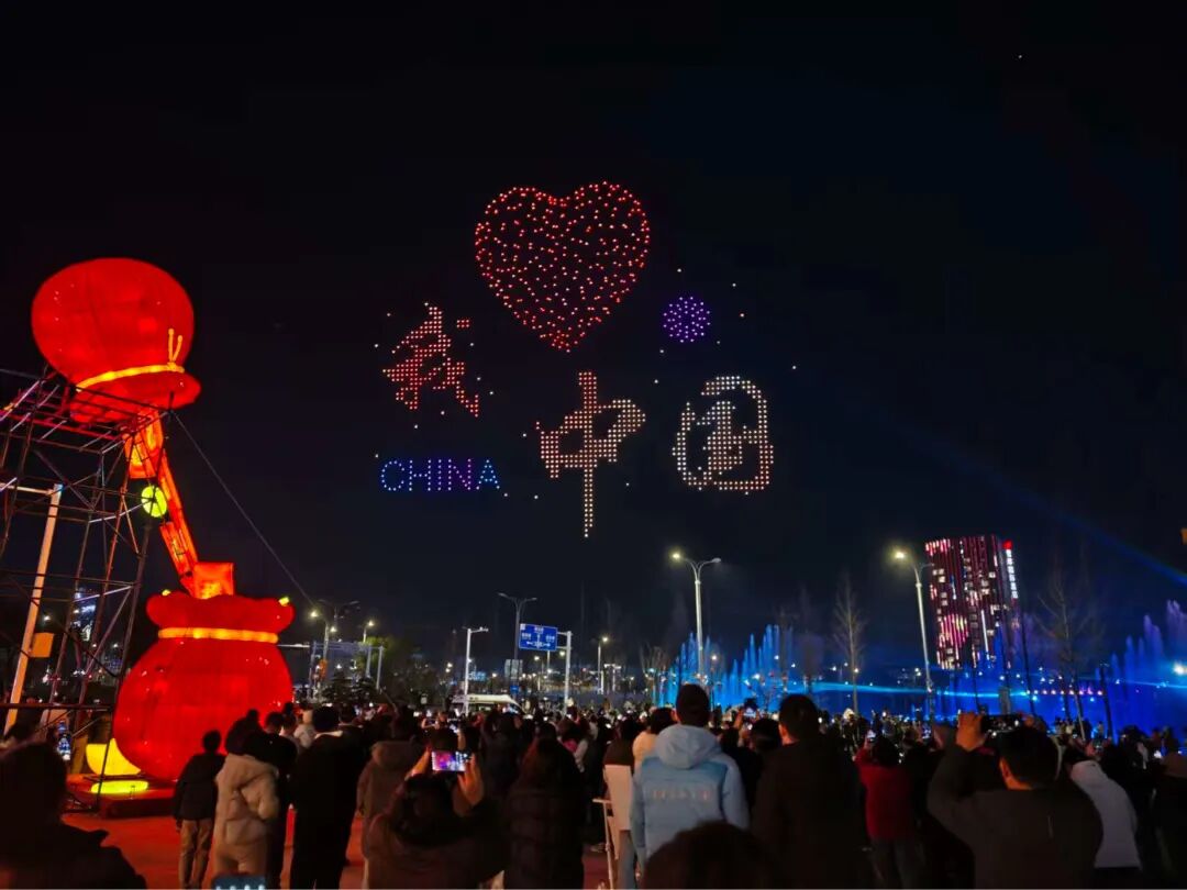生态科技新城开展无人机飞行表演,优化光影水秀内容,融合周边建筑墙面灯光氛围,为周边市民游客打造一场水、陆、空三维立体的“灯海”景观。
