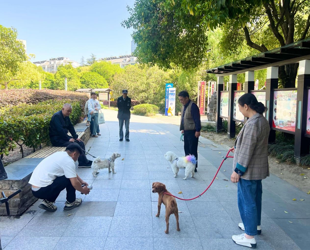 这场宠物运动会的背后,是琼花观社区多元参与、共建共治的治理机制。社区以“小爬爬”议事会为抓手,定期邀请派出所民警、志愿者、党员代表和居民共同议事,围绕遛狗牵绳、粪便清理等突出问题畅所欲言。“花坛边应该多放几个拾便袋”“晚上遛狗的人多,能不能装几个地灯”……一条条建议被记录、采纳、落实。