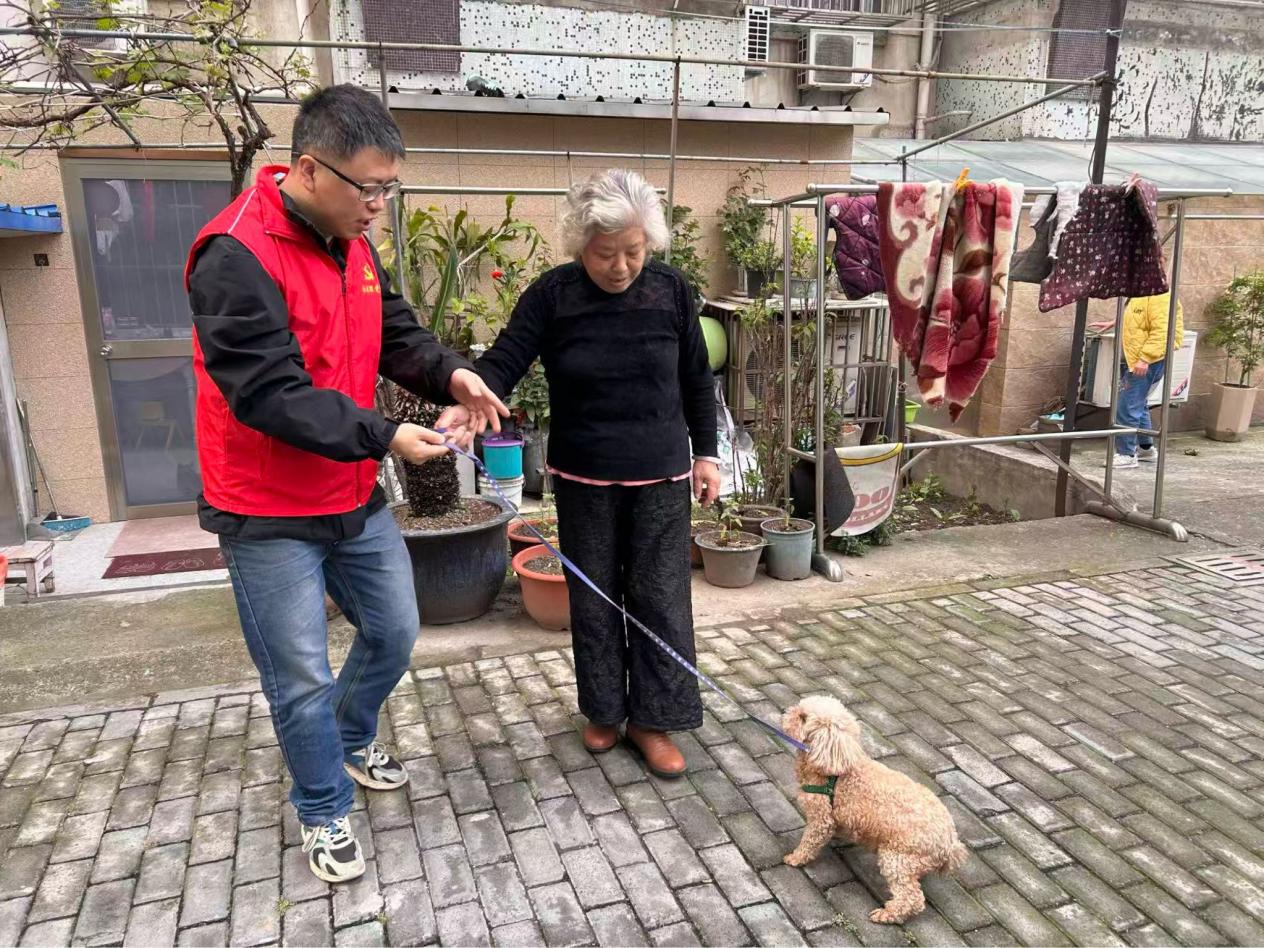 在荷花池社区,志愿者谈启定期穿梭在小区的街巷与步道之间,替独居的张阿姨照料她的“毛孩子”。张阿姨年事已高、腿脚不便,每日遛狗、清理粪便成了心头负担。谈启主动站了出来, 提供“代遛狗”服务。“阿姨一个人在家,有狗狗陪着,我们更要帮她把狗狗照顾好。”谈启的无私奉献,是荷花池社区“荷合共生”党建品牌合伙人项目的生动实践。通过志愿者结对、党员联户等机制,不断织密养老服务网,让独居老人身有所养、心有所依。