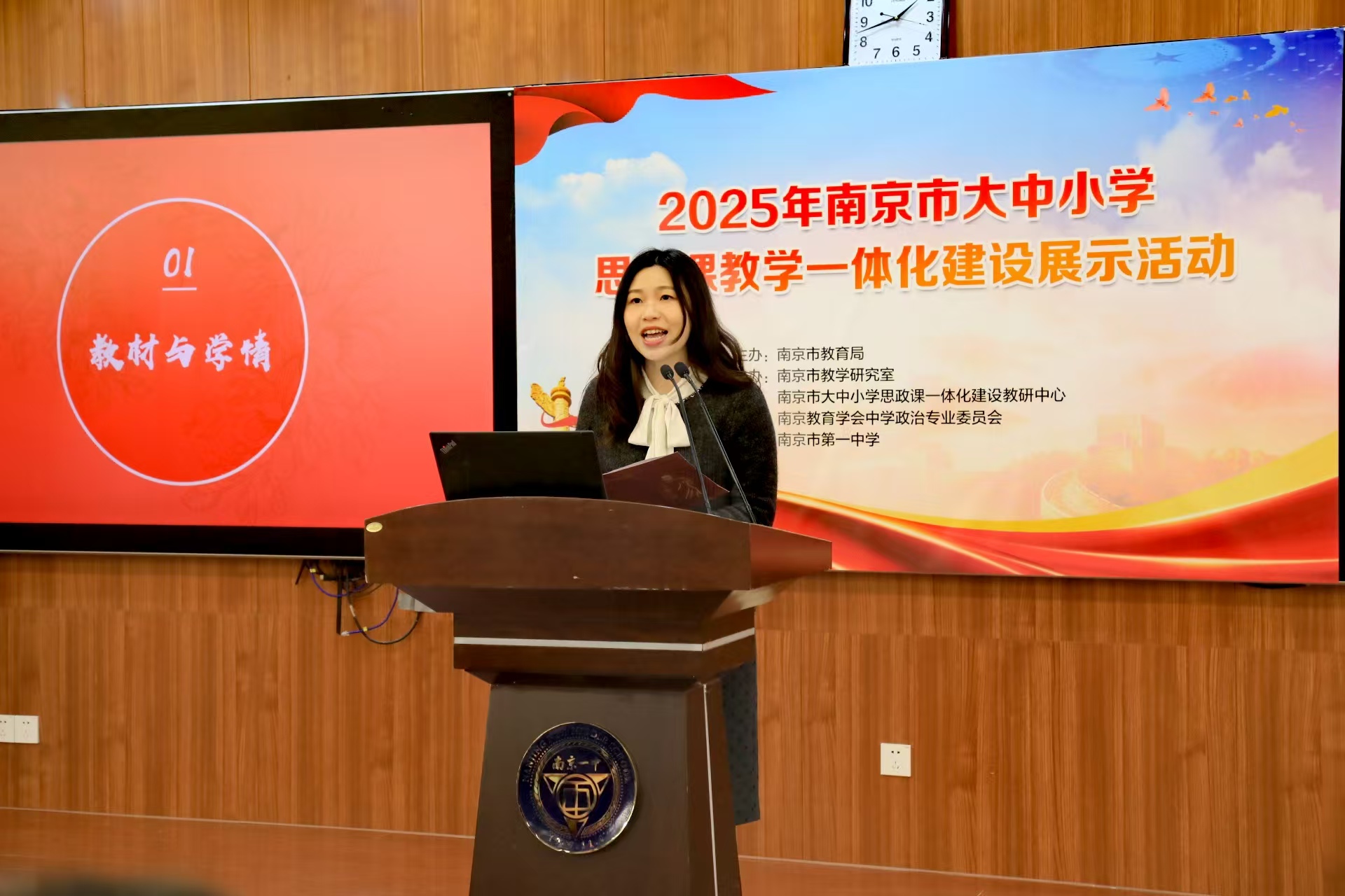 近日,南京市大中小学思政课一体化建设教学展示活动在南京市第一中学举行。本次活动以“聚焦高质量发展,深入推动党的二十届四中全会精神融入思政课教学”为主题。全市大中小学思政课教师代表、教研员及专家近四百人齐聚一堂,共研一体化育人路径,共话思政课高质量发展。