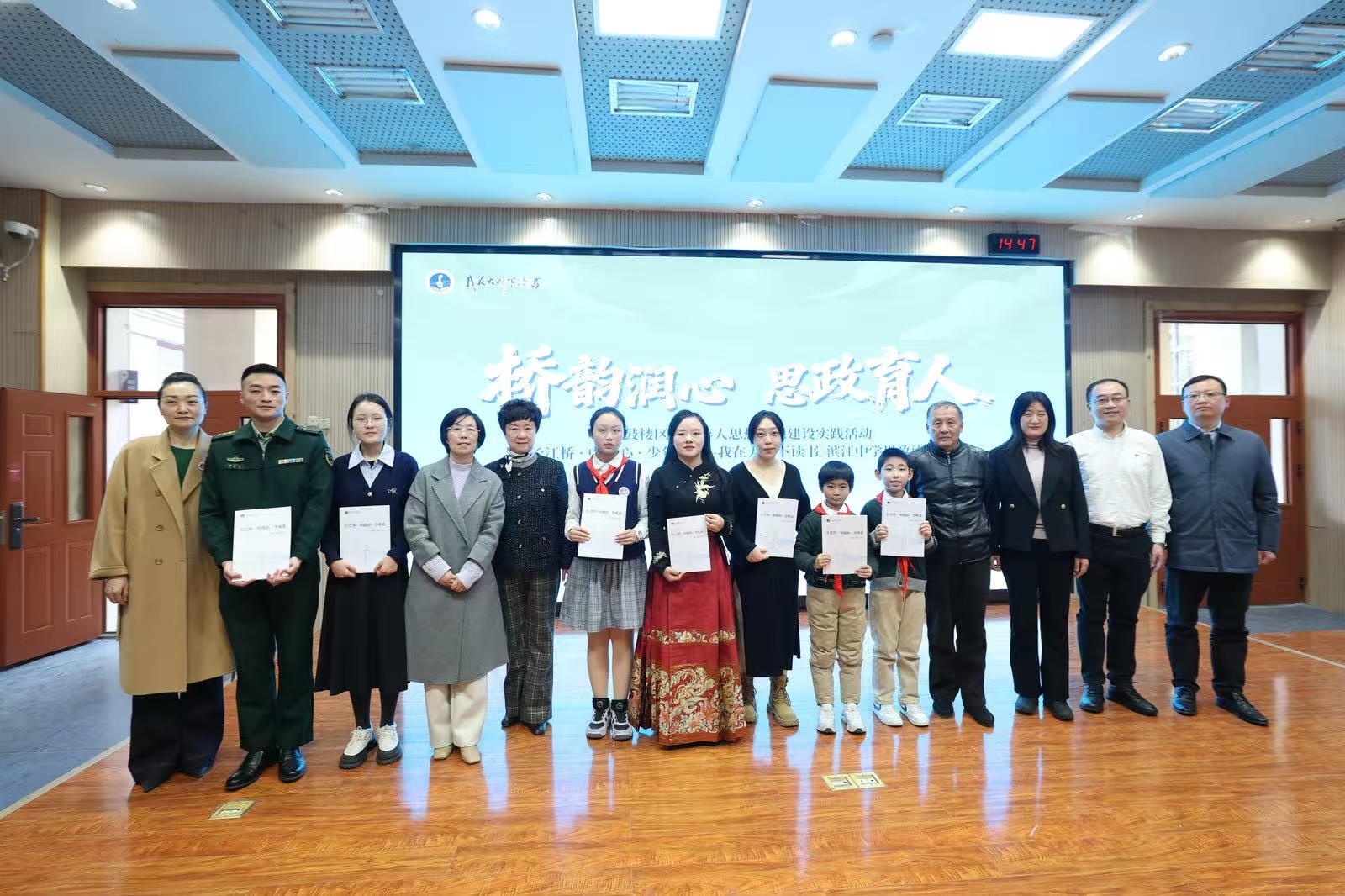 为贯彻落实习近平总书记对未成年人思想道德建设工作的重要指示精神,全面落实立德树人根本任务,12月29日,恰逢南京长江大桥建成通车57周年纪念日,“桥韵润心 思政育人”鼓楼区未成年人思想道德建设实践活动暨《长江桥・中国心・少年志——我在大桥下读书》南京市滨江中学思政读本发布会圆满举行。活动由鼓楼区委宣传部(文明办)、鼓楼区教育局主办,南京市滨江中学承办。江苏省科协领导,高校思政教育专家,鼓楼区相关部门、街道领导,区内各中小学德育副校长、大中小学师生及家长代表齐聚一堂,共同见证这一思政育人重要活动。