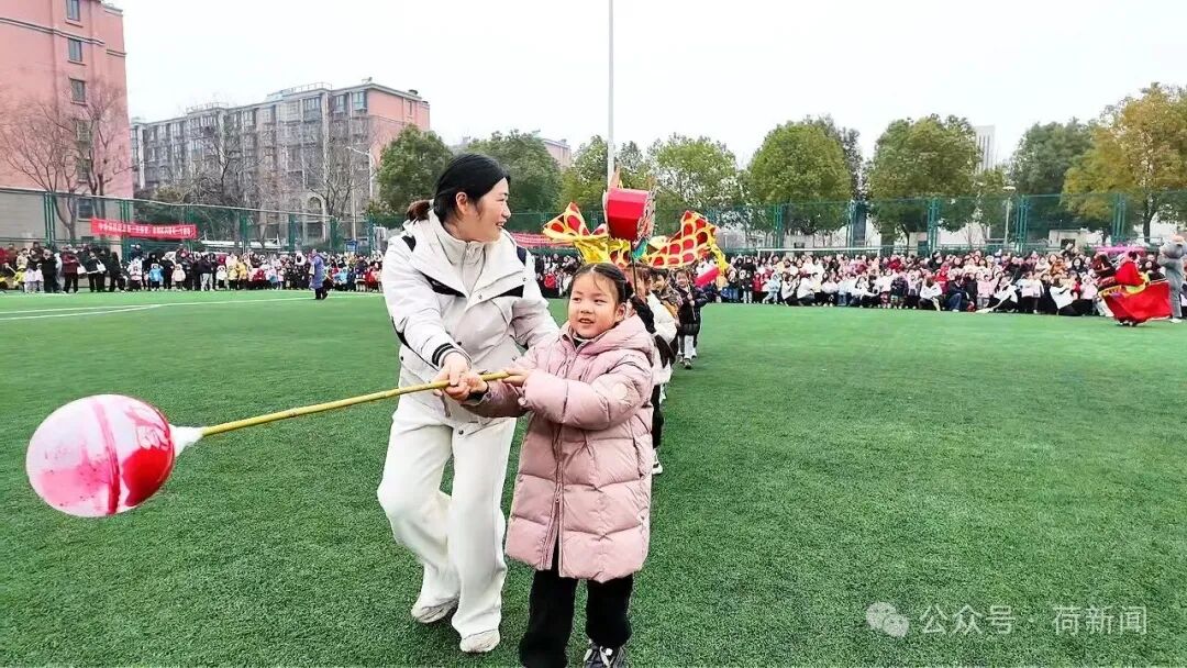 随后,大家齐聚操场,共同参与热闹非凡的舞龙民俗体验。孩子们在欢声笑语中感受中华传统文化的魅力,现场暖意融融、气氛热烈。