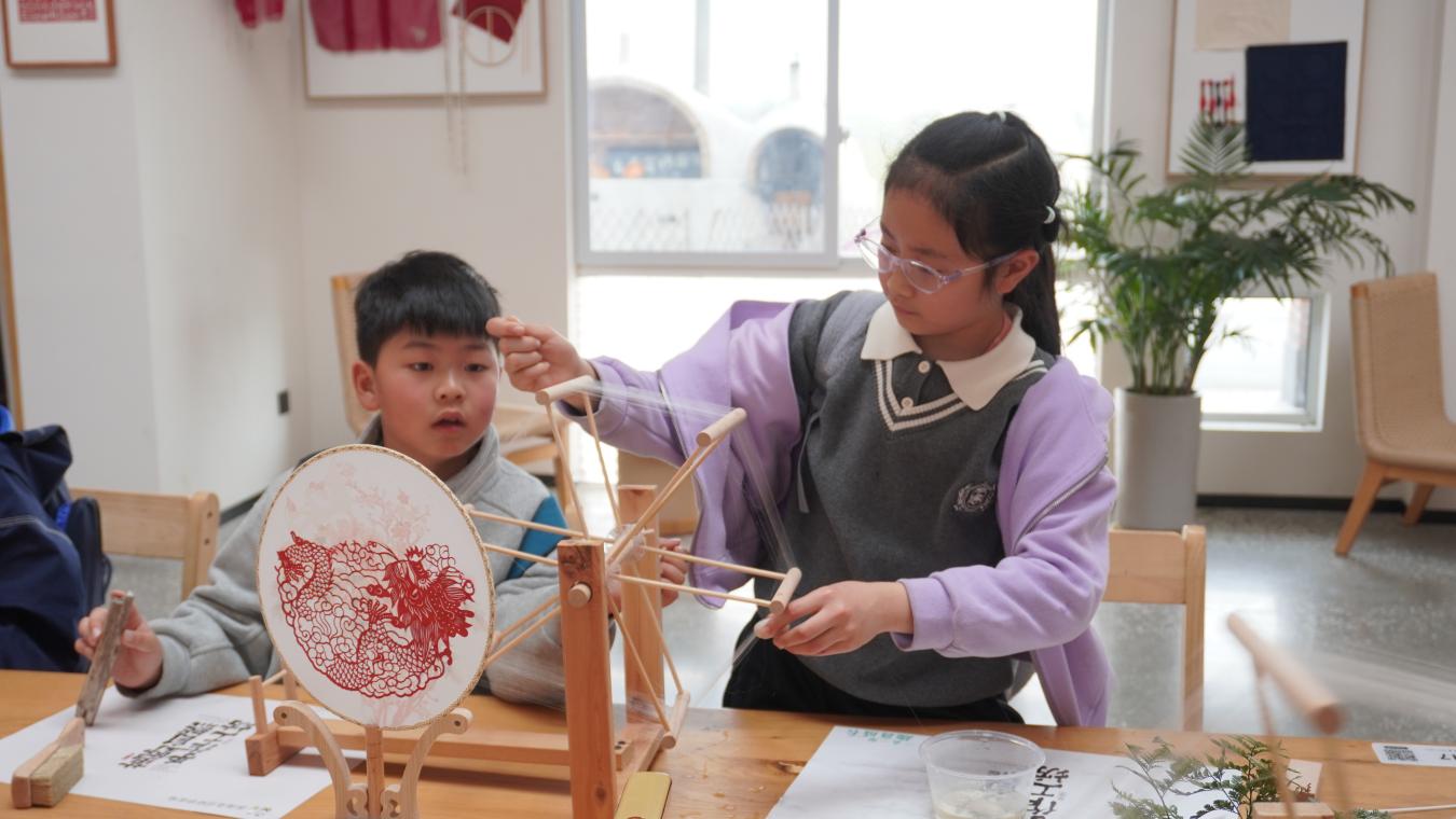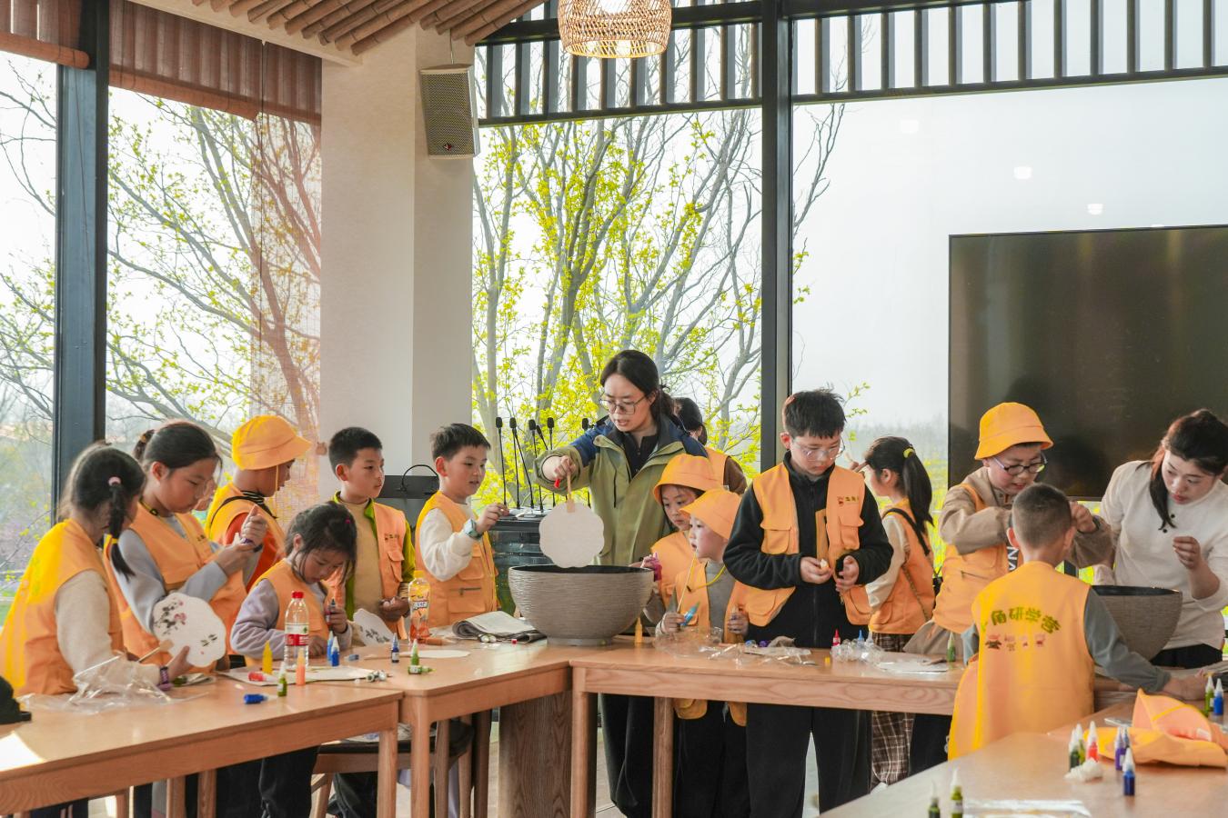 “老师,油菜花能吸引哪些小昆虫呀?”“咱们常见的蜜蜂、蝴蝶都喜欢油菜花的花粉,它们还是播粉小帮手呢!”4月2日,宿迁市宿城区牛角村欢乐田园度假区的油菜花田里,孩子们围在研学老师身边踊跃提问,稚嫩的声音伴着春风与油菜花香,格外动人。不远处的阡书屋内,参与研学的孩子们在学习制作漆扇,调漆、上色、绘制花纹,一把把色彩鲜亮、图案精美的漆扇在指尖悄然成型。