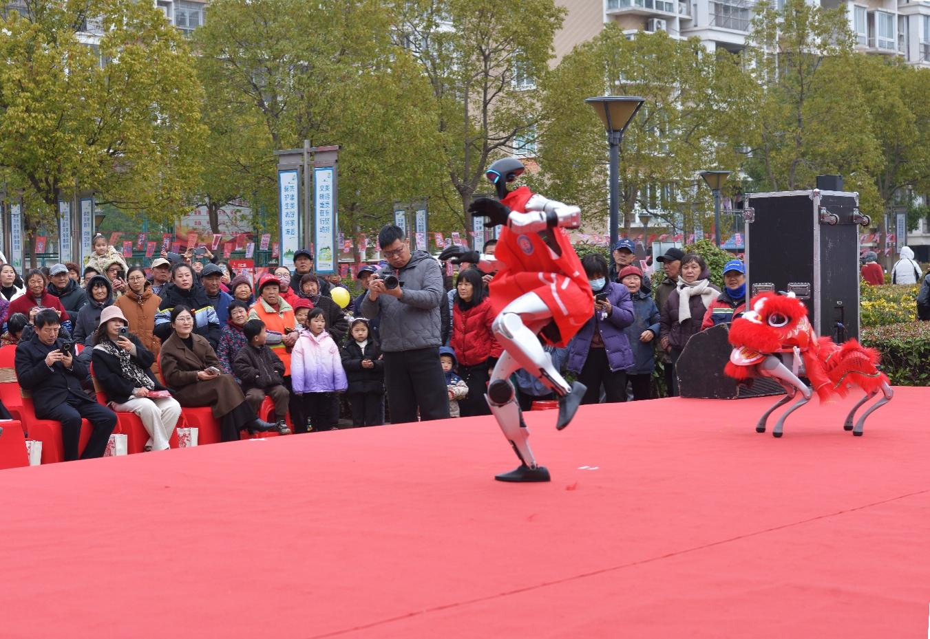 当千年传统遇上智能科技,元宵佳节解锁全新打开方式。本次活动打破传统民俗的单一形式,将AI科技元素巧妙融入,让古老节日焕发新时代的生机与活力。南通泰坦文心桥人工智能科技有限公司带来的机器人表演《火力全开》惊艳全场,配合动感的音乐,智能机器人迈着灵活的步伐,完成精准的舞蹈动作,机器狗则身穿喜狮服装,左摇右摆、憨态可掬,它们的一举一动都充满科技感与趣味性,为元宵佳节增添了别样的欢乐。泰坦人工智能总裁张琼表示:“传统节日引入AI技术,不仅让传统节日的庆祝形式变得更加多元、新潮,更让观众尤其是青少年感受到人工智能技术的飞速发展。未来,AI科技将与我们的生活更加息息相关,它将以更智能、更便捷的方式融入各个领域,让科技真正服务于生活,为传统文化的创新发展提供无限可能。”