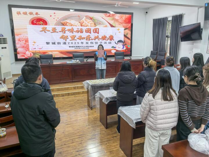 “冬至大如年,人间小团圆。”12月19日下午,淮安市金湖县黎城街道新时代文明实践所于街道会议室举办“冬至寻味话团圆 邻里和乐共安康”主题包饺子活动,邀请辖区群众齐聚一堂,以传统习俗为媒,在欢声笑语中传承文化、凝聚邻里情,让寒意渐浓的冬日洋溢别样温暖。