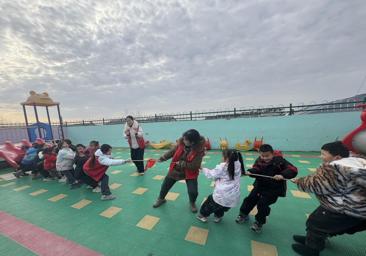 本次活动以趣味运动会的形式,让孩子们在奔跑、跳跃和团队协作中感受冬季运动的快乐。活动现场,孩子们在志愿者的引导下有序参与拔河、接力赛等项目,欢呼声与加油声此起彼伏,冬日的寒意被孩子们高涨的热情驱散。活动项目兼具运动性与趣味性,既锻炼了孩子们的体能,也增强了团队意识。同时,教师和志愿者还结合活动节点,向孩子们普及冬季健康知识,引导孩子们科学运动、勤于锻炼,真正将“健康过冬”的理念融入实践,在寓教于乐中播下终身运动的种子。