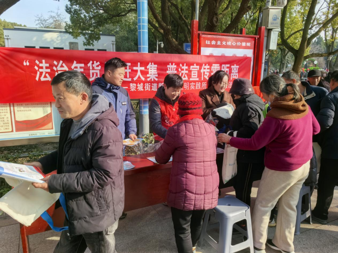 在普法反诈宣传区,司法所工作人员设立咨询台,围绕居民关心的婚姻家庭、邻里纠纷、劳动用工等问题提供法律咨询,并结合典型案例开展反诈宣传,提醒大家警惕电信网络诈骗、养老诈骗等常见套路。志愿者向过往群众发放普法手册、反诈指南等宣传资料,引导居民增强法治意识和自我保护能力,把“法治年货”送到群众家门口。