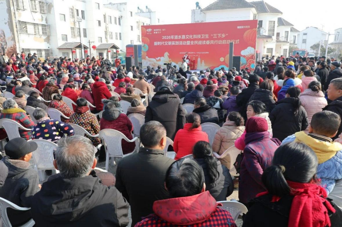 2月4日上午,2026年度淮安市涟水县文化科技卫生“三下乡”新时代文明实践活动暨全民阅读春风行动启动仪式在朱码街道韩陈村举行。活动聚焦韩陈村村民实际需求,通过“送文化、送科技、送健康”与“全民阅读推广”“文明实践浸润”两大主线,实现“服务下沉、知识下乡、文明入户”,推动乡村文化振兴与乡风文明建设。