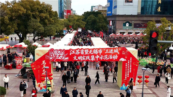 中国鼓《瑞兽献新春》一敲响,瞬间点燃全场气氛;作为“中国民乐之乡”、刘天华故里,江阴的民乐血脉在弦间流淌~二胡齐奏《战马奔腾》弦音激昂,15位演奏者斗琴交锋,引来满堂喝彩。来自无锡文明共建城市—盐城的江苏省杂技团亮出绝活《四人顶缸》,重达三十斤的花缸在演员的肩头翻飞流转,力与美的交织让观众惊叹连连。村民组团合唱、群众自编自演的节目轮番登场,质朴欢歌里是藏不住的精气神。活动线上直播超过800万网友围观,一个字,绝!