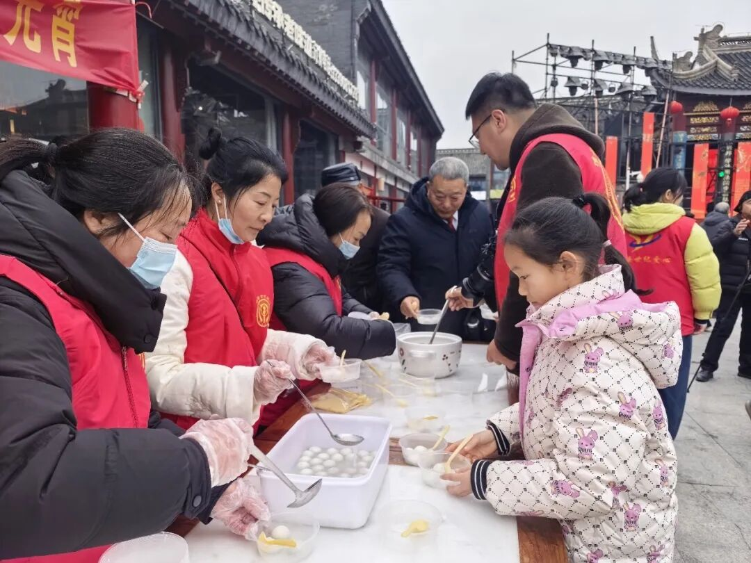 “来,尝尝热乎的汤圆,祝您节日快乐!”活动现场,免费品尝元宵活动,更是暖到了大家心坎里。煮汤圆、分汤圆……世纪爱心志愿者服务队的志愿者们分工协作、忙碌不停。一碗碗热气腾腾、软糯香甜的汤圆端到市民和游客手中,香气四溢、暖意融融。来自宿迁的游客李晓脸上满是笑意:“早就听说淮安的元宵活动极具特色,我特意趁着假期赶来体验。看演出、猜灯谜、吃汤圆,沉浸式感受元宵节氛围,这一趟来得太值了!”