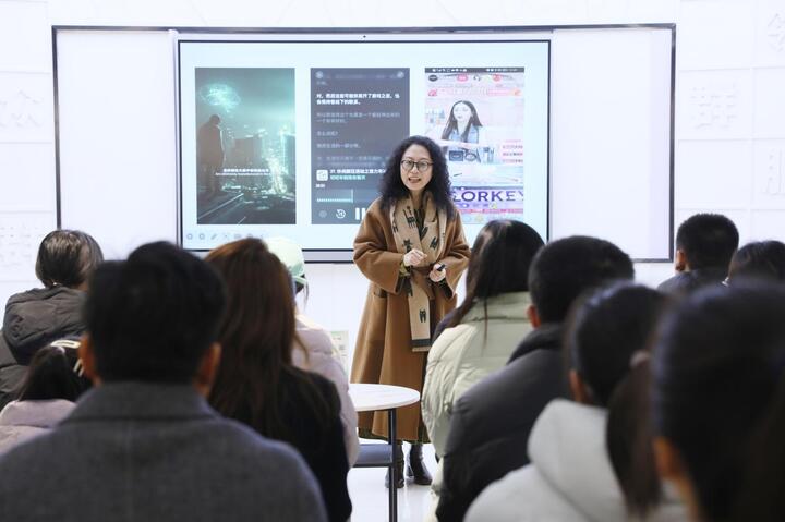 随后的公益课堂上,主讲人钱莉以“置身事内”为主题,通过播放音频片段、互动快答、实战工坊等形式,为大家传授面试“声音妆造”、职场沟通技巧及人际表达要领等,助力提升青年群体的语言艺术素养与交流沟通能力。此次活动不仅让大家在“声景时代”中找到了声音的力量,更激发了大家投身家乡建设、弘扬海安文化、讲好海安故事的青春热情。