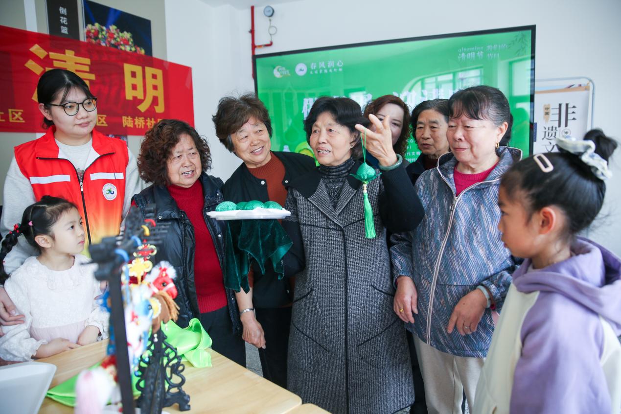清明不仅是追思的时节,也是感受传统文化魅力的好时机。如城街道“一老一小”融合服务中心内欢声笑语不断,居民们齐聚一堂制作青团、缝制布艺青团,在动手实践中重温清明食俗。丁堰镇茄儿园社区新时代文明实践站将课堂搬到户外,孩子们踏青寻春、编织柳环,延续“清明插柳”的古老习俗。
