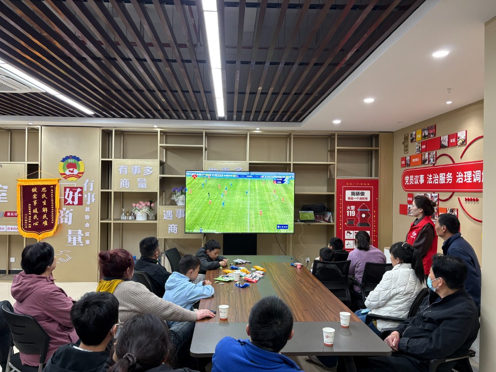 连云区各新时代文明实践所、站纷纷开展“我在文明实践中心看苏超”活动,将体育赛事、便民休闲、趣味互动有机融合。海州湾街道新时代文明实践所携手海州湾旅游度假区,在海边搭建屏幕,海鲜自助、特色烧烤等业态人气爆棚,“边吃海鲜边看球”的独特体验,成为港城最具海滨风情的观赛打卡地。连云街道新时代文明实践所将赛场现况“搬”到了居民晚间聚集的七一广场,夜市美食飘来的阵阵香气与此起彼伏的呐喊声交织,体育热血与烟火气碰撞出别样火花;板桥街道张艞村、云山街道云景社区新时代文明实践站组织村社居民走出家门,与邻里相聚共同观看球赛,现场还有志愿者适时科普足球小知识、呼吁大家文明观赛,进一步丰富了群众精神文化生活。
