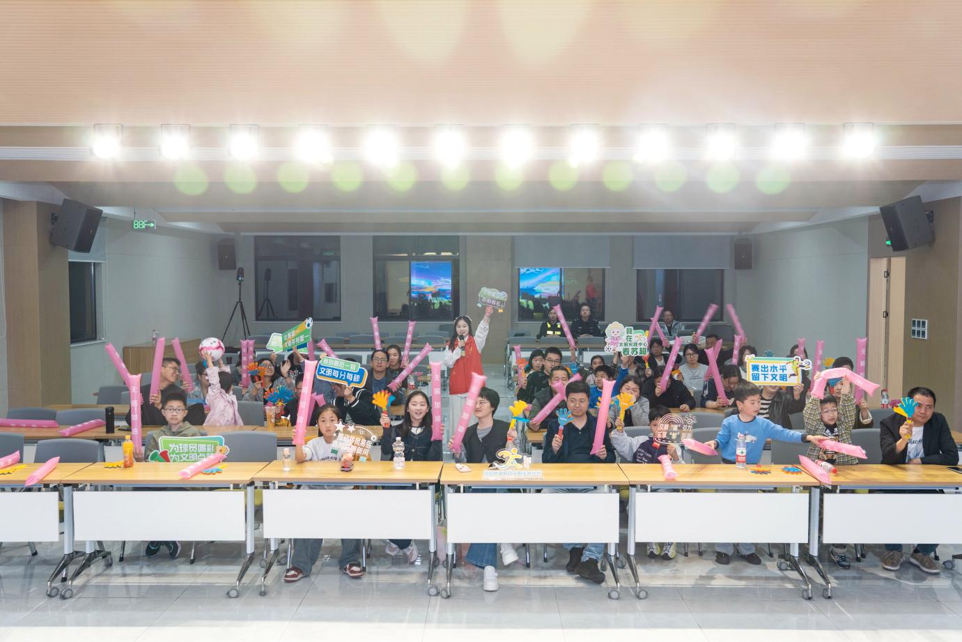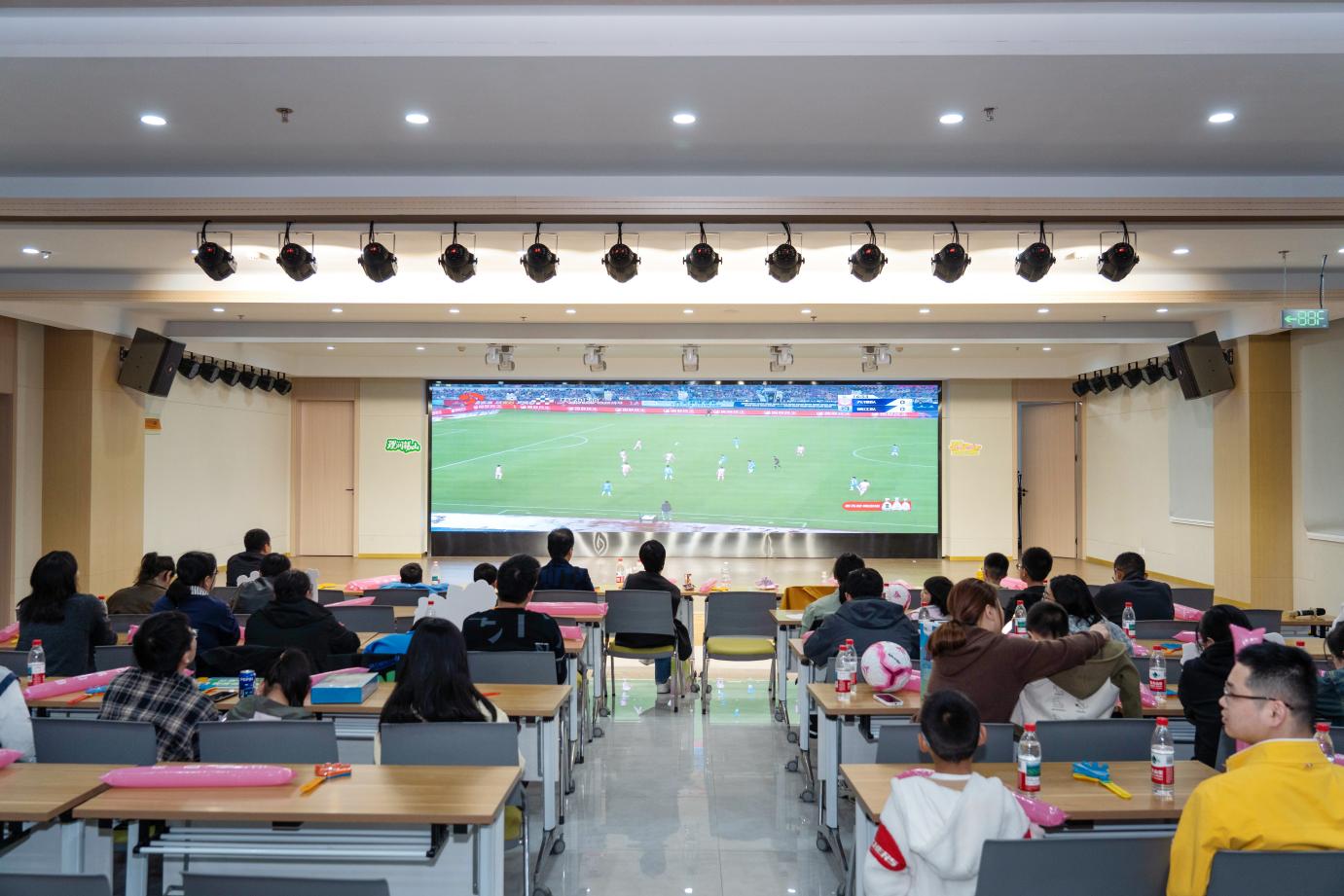 沉浸式观赛氛围浓厚,赛事直播同步播放,每一次精准传球、每一脚精彩射门,都引来现场阵阵喝彩。志愿者通过全程引导服务、知识问答互动,倡导理性观赛、文明助威、爱护环境;观众有序就座、热情有度,营造文明、健康、热烈的观赛氛围,打造有温度、有秩序、有活力的赛事“第二现场”。