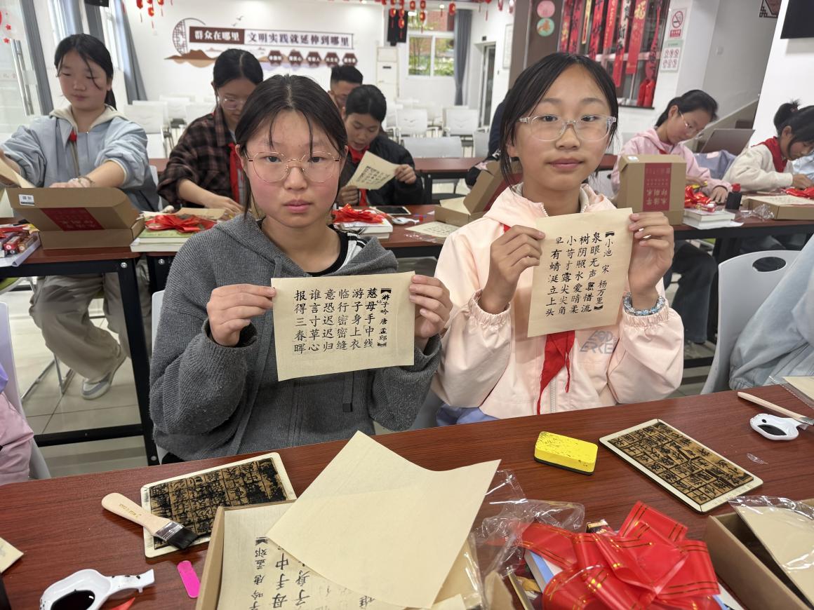 依托江苏文明实践云平台,除核心观影环节外,活动还精心设置多项配套内容,丰富全民阅读体验。在绿书签宣讲中,工作人员用通俗语言讲解非法出版物识别知识,引导青少年远离不良读物,守护健康阅读环境;在“卷香留赠”环节,江苏文明实践云联合凤凰少儿出版社,为活动提供公益书籍支持,现场领导们为学生赠送图书并写下鼓励寄语,助力青少年成长;在“活字寻香”古诗活字印刷体验里,大家亲手拓印经典古诗,在传统技艺中感受文字魅力,让书香与匠心相融。现场氛围温馨热烈,参与活动的学生与家长纷纷点赞:“活动形式很新颖,看电影、读好书、做体验一站式完成,不仅让孩子感受中国经典文学的魅力、增强了文化认同感,还培养了阅读兴趣,特别有意义。”