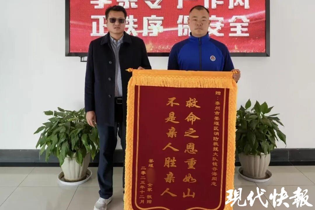近日,泰州市姜堰区消防救援大队收到了一面承载满满感激的锦旗,对大队消防员钱存海路遇车祸出手相助的行为,表达了敬意和感谢。