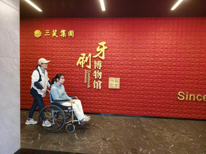 刘娟推着特殊群体游扬州