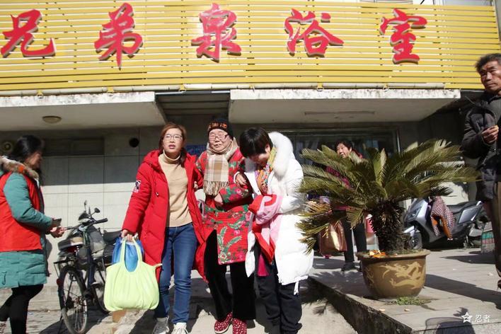 刘娟带老人到浴室洗澡