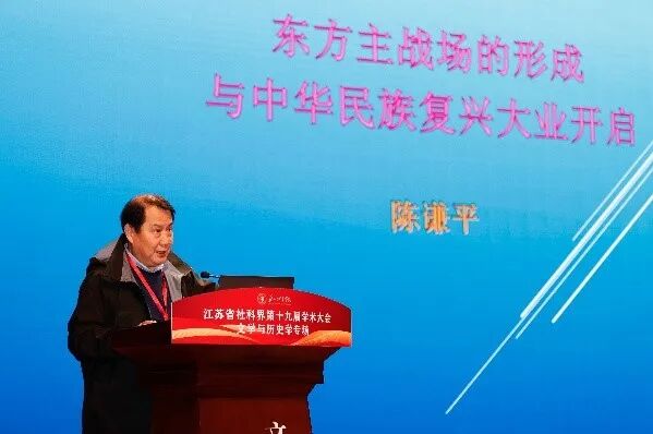 在主旨报告环节,南京大学特聘教授陈谦平在《东方主战场的形成与中华民族复兴大业的开启》的专题报告中对东方主战场的构成逻辑、发展脉络及中华民族复兴的历史进程展开深度剖析。他提出中国战场作为东方主战场的核心,以巨大的民族牺牲牵制了大量侵略力量,为世界反法西斯战争的全局胜利做出了不可磨灭的历史性贡献;这份根植于民族精神的抗争力量,既是中华文化生命力的集中彰显,也为新时代以文化赋能经济社会高质量发展、凝聚民族复兴磅礴动力提供了深刻历史启示。
