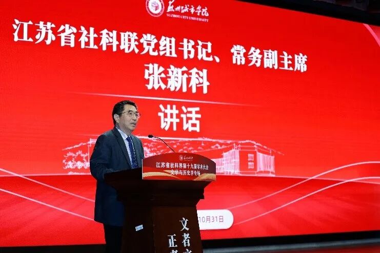 10月31日,由中共江苏省委宣传部、江苏省社科联主办,苏州城市学院承办,苏州江南文化研究中心、苏州城市学院城市文化与传播学院协办的省社科界第十九届学术大会文学与历史学专场在苏州举行。来自省内外高校、科研机构等单位的领导、专家学者、论文作者以及苏州城市学院师生代表齐聚一堂,围绕“文化赋能经济社会发展”主题展开学术研讨与交流。