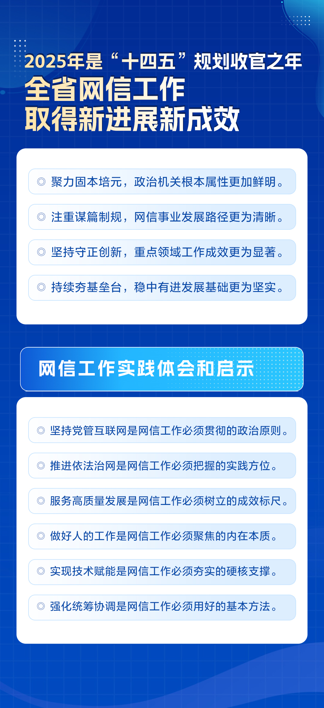 会议指出,2025年是“十四五”规划收官之年,是江苏网信系统全面提升能力、更好发挥作用的奋进之年。一年来,全省网信系统始终坚持以系统谋划把准方向、以聚焦主线明晰路径、以重点突破带动整体、以创新实践塑造品牌,推动全省网信工作取得新进展新成效。